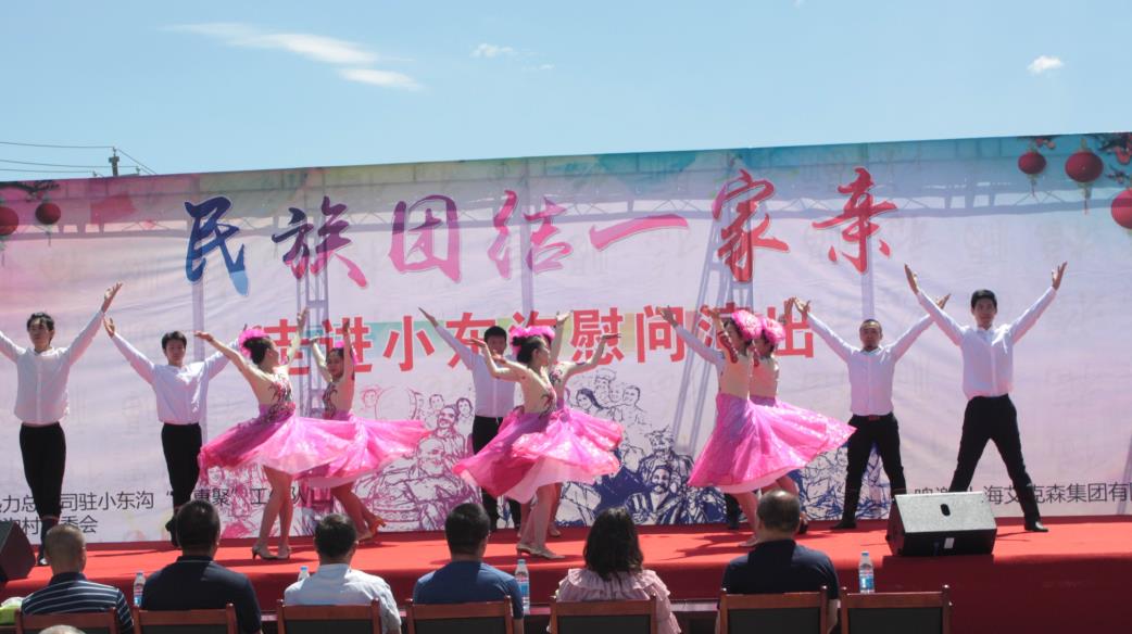 七月的南山陽光明媚,水西溝鎮(zhèn)小東溝村新建的文化廣場一大早已經(jīng)熱鬧非凡,村民不約而同的早早的來到這里忙碌起來了,幫助駐村工作隊(duì)和村委做起了灑水、擺凳子、音響設(shè)備等準(zhǔn)備工作。由“訪惠聚”工作隊(duì)和艾克森聯(lián)合邀請的專業(yè)文化團(tuán)隊(duì),他們帶著精心編排的文藝節(jié)目和小東溝村各族村民,以“民族團(tuán)結(jié)一家親”為主題的聯(lián)歡活動(dòng)在這里舉行。全村民眾和60多對“結(jié)對親戚”歡聚一堂,唱歌、跳舞、雜技、說唱各種表演形式講述著民族團(tuán)結(jié)的親情。