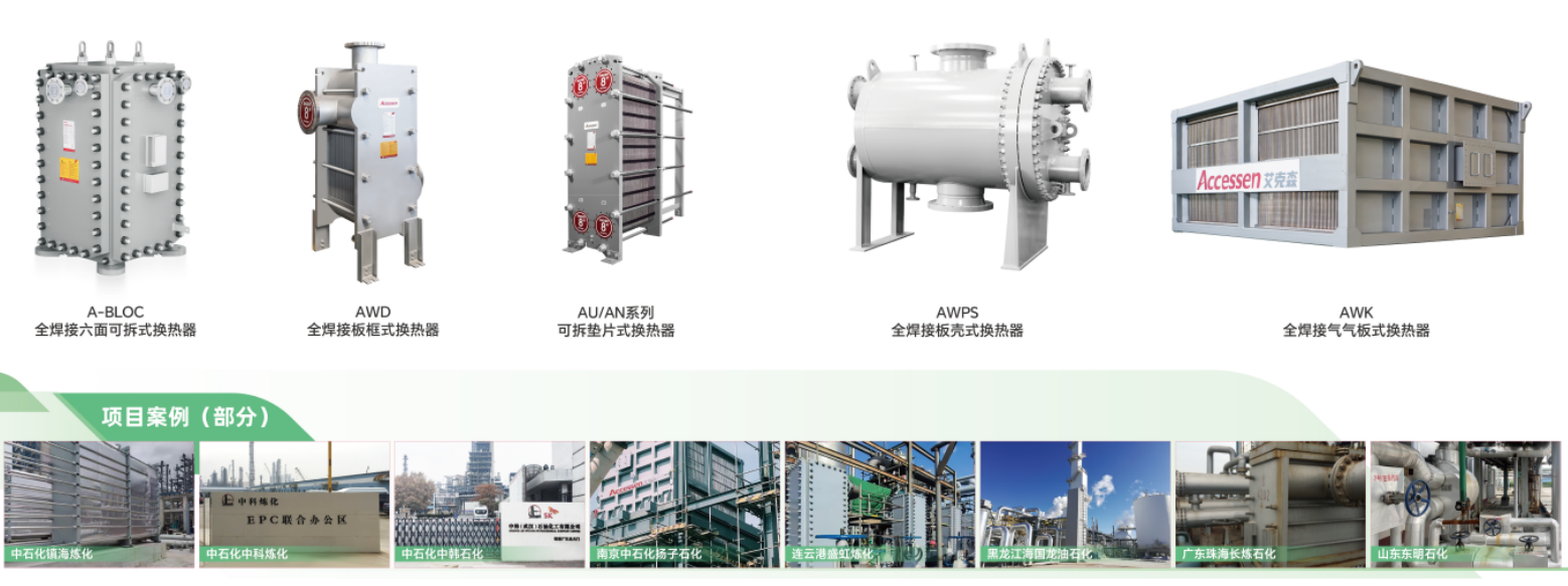 艾克森的換熱產(chǎn)品和解決方案覆蓋了中石油、中石化等企業(yè)的各個下屬單位,還包括非三桶油的各類地?zé)捄褪髽I(yè)、包括中化泉州、中海殼牌、恒逸石化、盛虹煉化、衛(wèi)星石化、桐昆石化、寧波金發(fā)、煙臺萬華、山東聯(lián)泓、東明石化、魯清石化、中景石化、翔鷺石化、華錦阿美等知名企業(yè)的各個工藝段。