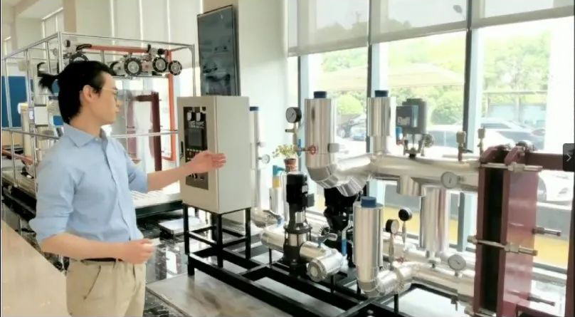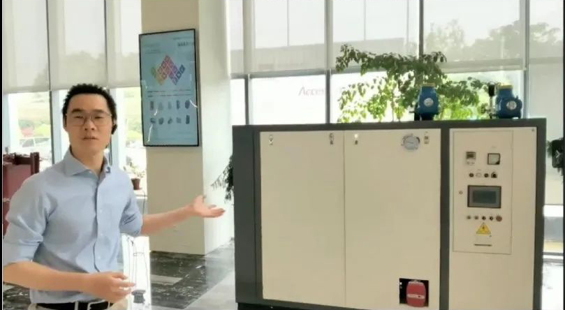 跟隨鏡頭,艾克森技術(shù)支持徐工,帶領(lǐng)大家走進(jìn)艾克森產(chǎn)品展廳,通過視頻徐工介紹了展廳內(nèi)的主要產(chǎn)品:模塊化機(jī)組——根據(jù)客戶的需求進(jìn)行組合,可以于供熱,暖通空調(diào)和一些工業(yè)場合。